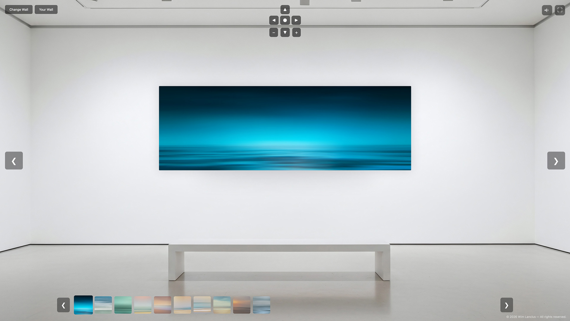 Use the controls to navigate the art, adjust size and position, change or upload a wall, enable music or enter fullscreen.